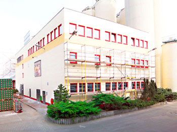 Die Fassade des Industriegebäudes (10.000 m²) wurde als Winterbaumaßnahme in einer Bauzeit von 2 Monaten komplett saniert. Dabei wurden Risse in der Außenwand des Gebäudes komplett beseitigt. Eine Betonsanierung und eine Industrieverfugung wurden bei diesem Projekt zusätzlich durchgeführt. Zur gleichen Zeit fanden in der Halle Maler- und Gerüstbauarbeiten statt. Verwendetes Baumaterial: Porenbeton Industriebauplatten.